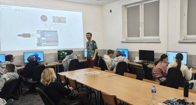 W budynku przy ul. Maszewskiej odbyły się warsztaty informatyczne z zakresu grafiki komputerowej, druku termotransferowego , druku termicznego, odnawialnych źródeł energii, programowania i Arduino,.