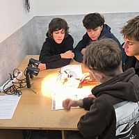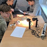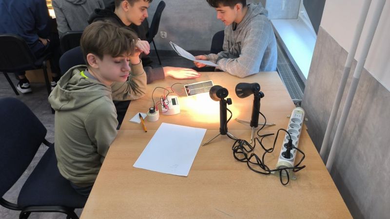 Uczniowie mieli również możliwość przeprowadzenia doświadczenia związanego z energią odnawialną w postaci słońca. Celem ćwiczenia było zaobserwowanie, w jaki sposób cień drzew, chmur i innych obiektów może wpłynąć na moc dostarczaną przez panele słoneczne. Dodatkowo uczestnicy mogli samodzielnie przetestować kamerę termowizyjną i sprawdzić, jak rozkładają się temperatury na różnych obiektach podczas pomiarów."