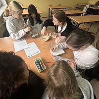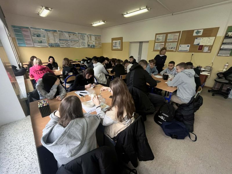 Tematem zajęć logistyczno –spedycyjnych było ,,Oznakowanie ładunku" oraz ,,Procesy produkcyjne w przedsiębiorstwie logistycznym”. Uczniowie klas 8 zostali zapoznani m. in. z zagadnieniami recyklingu, segregacji odpadów komunalnych. Przestawiono im podstawowe informacje oraz oznakowanie pojawiające się na opakowaniach transportowych. Po wysłuchaniu krótkiego wykładu na uczniów czekały interesujące zadania oraz krótki quiz. Podczas warsztatów uczniowie wcielili się w rolę pracowników produkcji. Wytwarzali wyroby gotowe oraz projektowali własne opakowania z podstawowymi oznaczeniami logistycznymi. Zajęcia pokazały, jak przebiega proces od przygotowania produktu aż po jego sprzedaż.