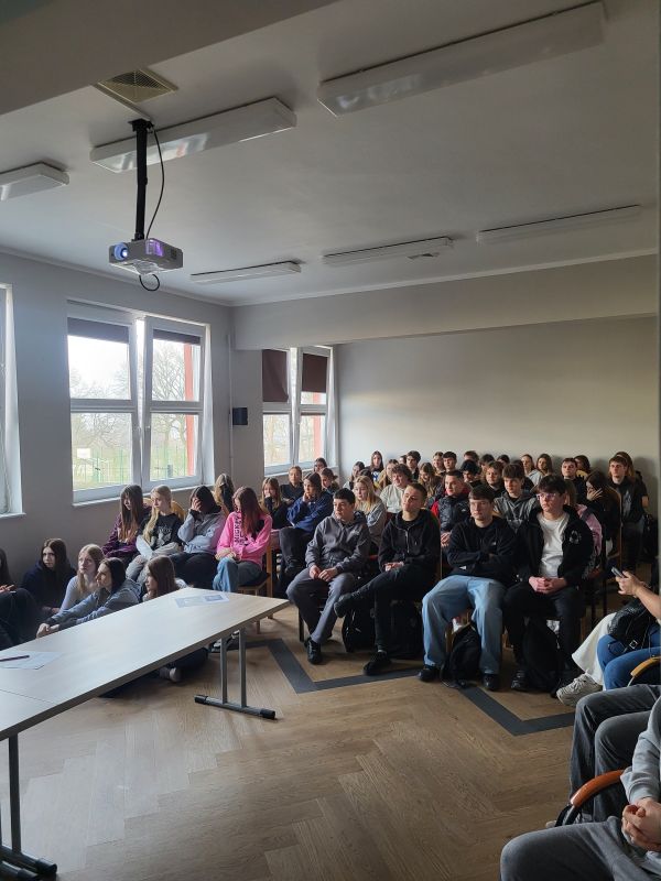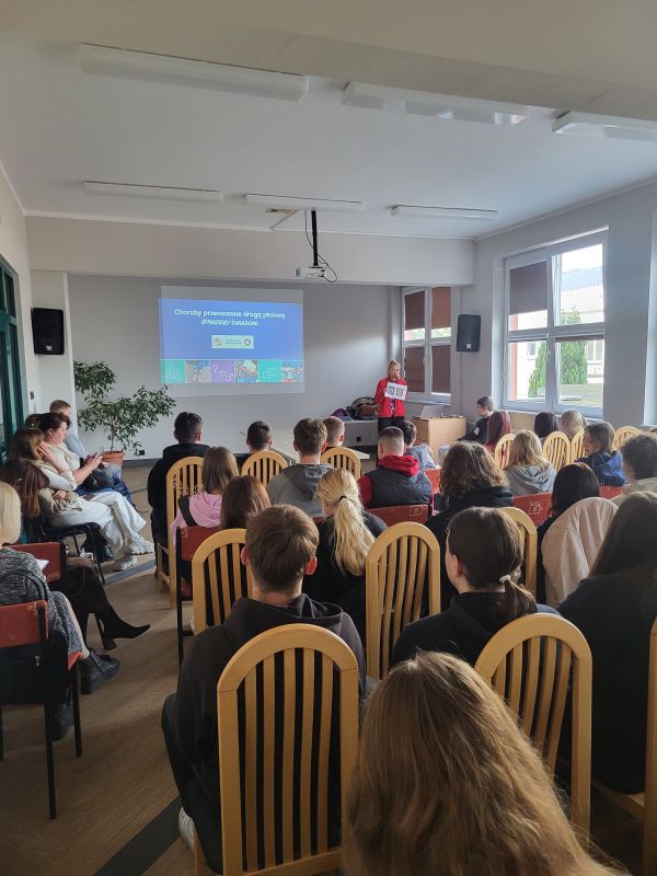W związku z zadaniami szkoły realizowanymi w obszarze zdrowia publicznego, rozpoczęliśmy w dniu 27 lutego 2026r. cykl spotkań z przedstawicielem Powiatowej Stacji Sanitarno- Epidemiologicznej, w ramach ogólnopolskiego programu #Młodzi Świadomi. Motywem przewodnim prelekcji będzie poszerzenie świadomości, wiedzy i działania o charakterze profilaktycznym dotyczące tematu rozpowszechniania chorób przenoszonych drogą płciową.
